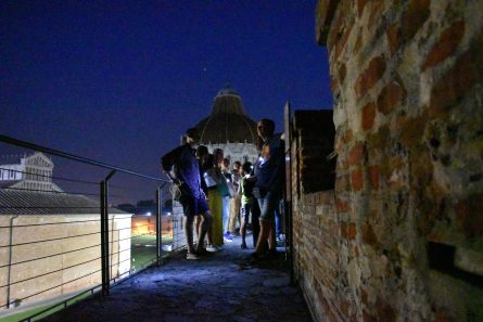 2020Passeggiate notturne sulle Mura sotto il cielo d’agostoapprofondisciAnche ad agosto tornano le passeggiate notturne sulle Mura di Pisa, dopo il successo delle precedenti iniziative che hanno visto sempre il tutto esaurito. Ultimo appuntamento domenica 23 agosto per una serata tutta da vivere, grazie ai panorami mozzafiato che si possono godere dal camminamento in quota. I partecipanti riceveranno in dotazione speciali luci 'a collana' e saranno accompagnati da una guida che li condurrà in un viaggio tra i monumenti e la storia della città: dalle terme romane dei 'Bagni di Nerone' alle chiese medievali di San Francesco e Santa Caterina, dl complesso razionalista 'Polo Marzotto' fino alla grandezza di piazza dei Miracoli, seguendo il filo rosso che lega questi luoghi alla storia della cinta muraria. Ritrovo alla Torre Piezometrica (Polo Fibonacci, ex Marzotto) con accesso dal camminamento ciclopedonale all'esterno delle Mura che si raggiunge da via San Francesco o da via Vittorio Veneto. Le visite si divideranno in tre turni, partenze ogni mezz'ora a partire dalle 21, e arrivo e discesa in piazza dei Miracoli dalla Torre Santa Maria. Prenotazioni telefonando al numero 050 0987480 dal lunedì al venerdì dalle 9 alle 13, online sul sito di CoopCulture, oppure direttamente la sera dell'evento fino ad esaurimento dei 60 posti disponibili. Biglietti a 5 euro (più 1,50 euro di prevendita), gratuito per bambini sotto gli 8 anni e per accompagnatori di disabili. Le persone con disabilità, previa comunicazione, potranno essere fatti ridiscendere attraverso l'ascensore di Torre Piezometrica non essendo presente l'ascensore presso la Torre Santa Maria. Tutto nel rispetto delle norme anti Covid e del distanziamento interpersonale. -